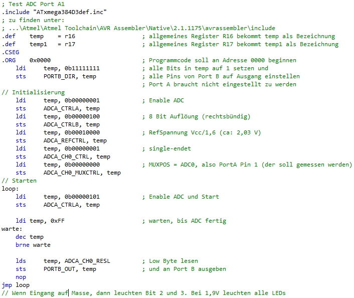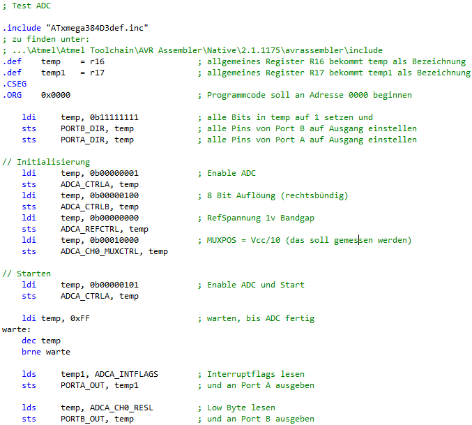 Der ADC hat eine Vergleichsfunktion um bestimmte Schwellwerte zu überwachen. Dadurch kann der Softwareaufwand reduziert werden.