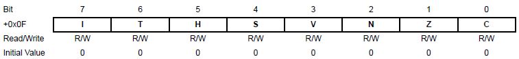 Dieses Bit muss gesetzt werden, um Interrupts global freizugeben. Ist es gelöscht, werden keine Interrupts ausgeführt. Das Bit wird durch die Hardware nicht gelöscht, wenn ein Interrupt auftritt. Das Bit kann durch die Software mit dem SEI und CLI Befehlen gesetzt oder gelöscht werden. Der RETI Befehl setzt das Bit ebenfalls.