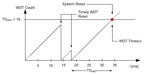 Im normalen Modus hat der WDT eine einfache timoutperiode. Der WDT muss (irgendwann) innerhalb dieser Zeit zurückgesetzt werden, ansonsten wird ein Reset ausgelöst. Es können elf unterschiedliche timeoutperioden (TOwdt) zwischen 8ms und 8s eigestellt werden. Die default Timeoutperiode wird durch fuses bestimmt.