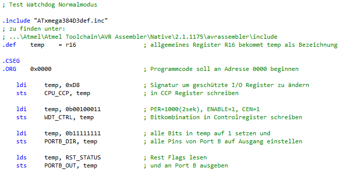 Der WDT wird vom 1kHz Ausgang des 32kHz ultra low power Oszillators getaktet. Da der Oszillator auf das minimieren des Stromverbrauchs ausgerichtet ist, ist er nicht sehr präzise. Daher kann die exakte timeout Zeit trotz identischen Einstellungen in den Registern bei mehreren Controllern unterschiedlich sein. Das muss man beachten, wenn die Software in mehreren Controllern läuft. Die Einstellungen für den WDT haben Schutzmechanismen (CCP und CEN).
