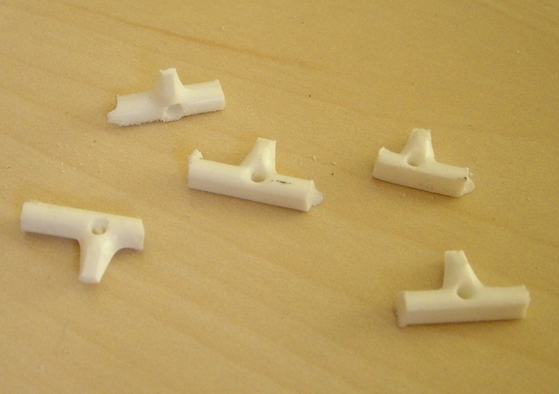 Um die LEDs innerhalb der Gebäude zu befestigen, werden aus den Kunststoffresten "Lampenhalter" gebaut.